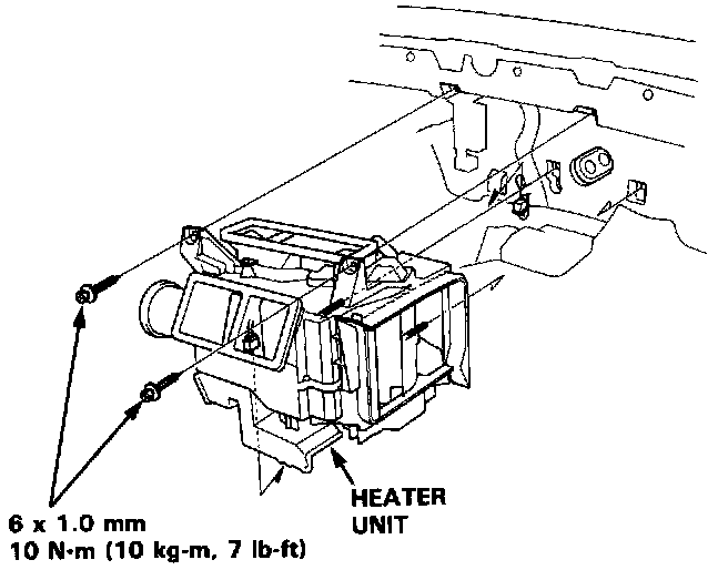 4. Remove the two heater unit mounting nuts from the engine compartment side.