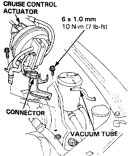 2. Disconnect the connector, then remove the cruise control actuator.