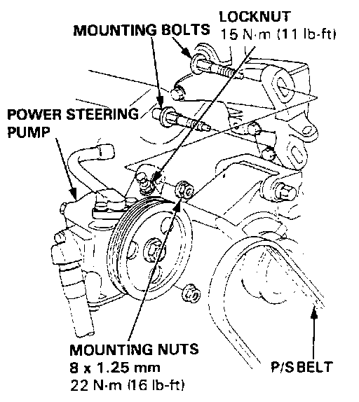 - After installing, adjust the tension of the P/S pump belt.