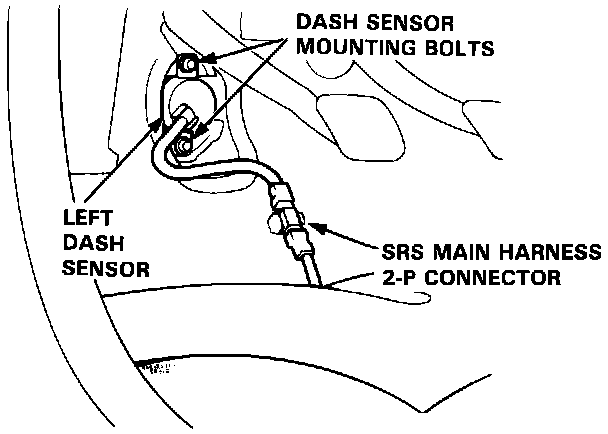 10. After installing the dash sensor, confirm proper system operation: Turn the ignition ON (II); the instrument panel SRS indicator light should go ON for about six seconds and then go OFF.