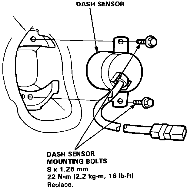5. Remove the two mounting bolts, then remove the left or right dash sensor.