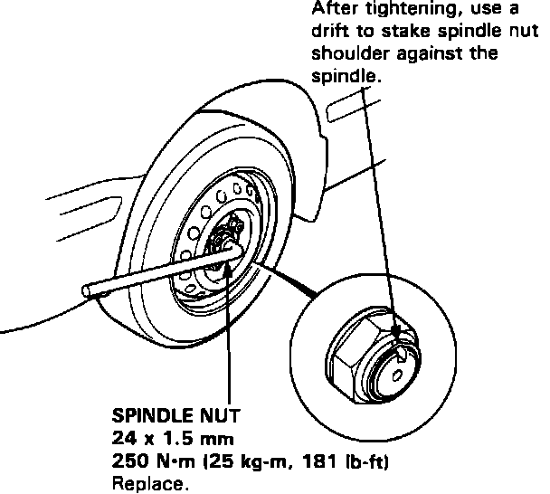2. With front of car supported on safety stands or rack, remove spindle and lug nuts.