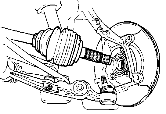 9. Pull steering knuckle outward, remove driveshaft outboard joint from knuckle using a plastic hammer, then remove knuckle.