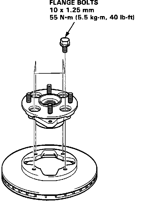 12. Install new brake rotor to hub assembly and torque bolts to specification.