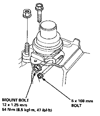 4. Tighten the mount bolt, then remove the 6 X 100 mm bolt.