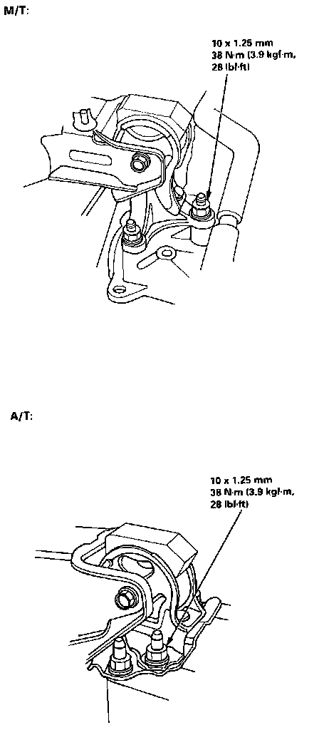 9. Tghten the nuts on the transmission mount bracket.