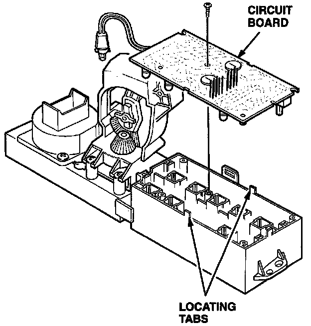 11. Remove the screw that mounts the circuit board to the housing. Grasp the circuit board near its upper and lower locating tabs, and remove the board by pulling it straight out.