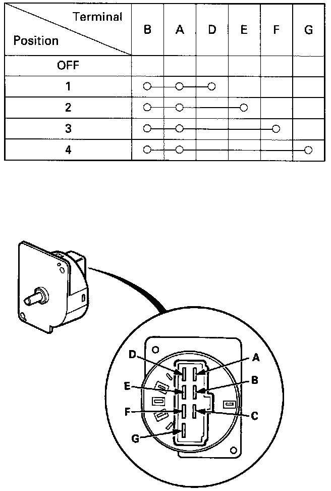 Refer to image for terminal identification. Check for continuity between the terminals according to the table.