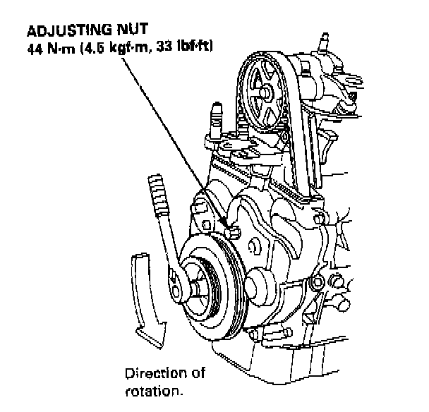 - Always rotate the crankshaft counterclockwise when viewed from the pulley side. Rotating it clockwise may result in improper adjustment of the belt tension.