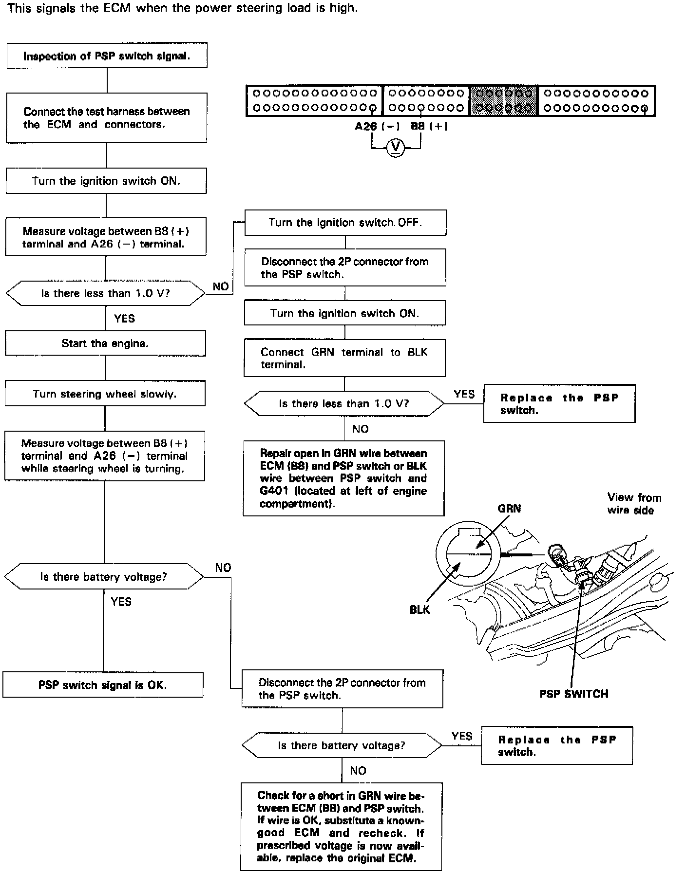 Power Steering Pressure (PSP) Switch Signal Inspection: