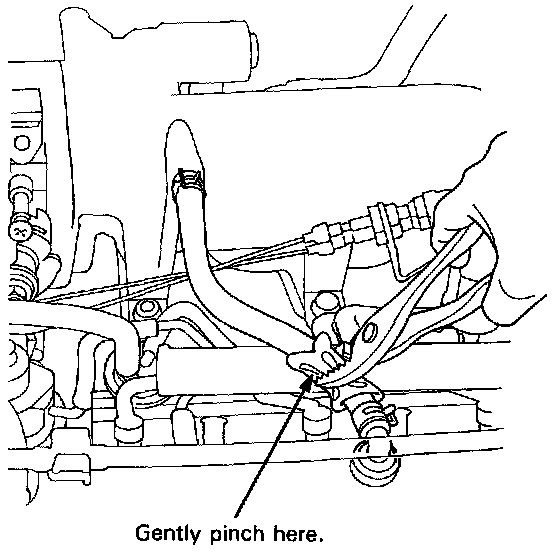 3. Lightly pinch the Positive Crankcase Ventilation (PCV) hose between the PCV valve and intake manifold. There should be a clicking sound from the PCV valve. If there is no sound, replace the valve and re-test.