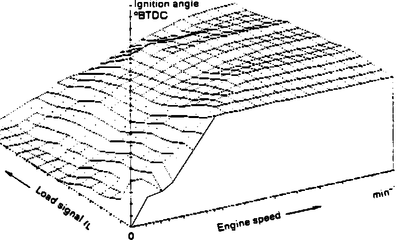 The ECM has, stored within it, complicated "ignition maps" to determine the correct ignition timing depending on engine speed and intake manifold vacuum pressure. Engine speed and vacuum pressure are calculated from the various input devices.