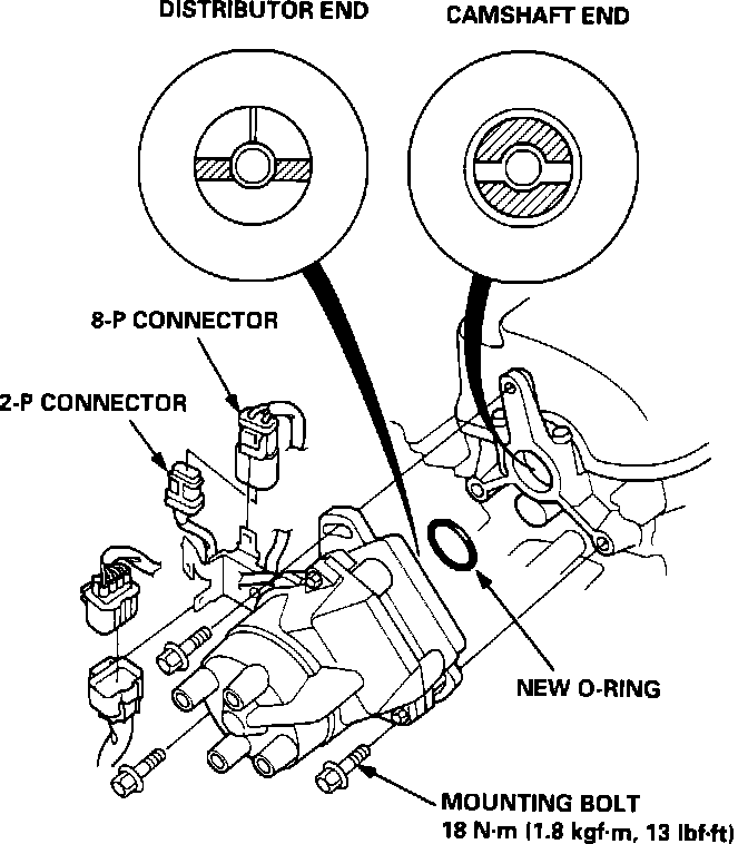 1. Disconnect the 2-P and 8-P connectors from the distributor.