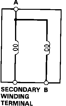 The Ignition Coil contains two windings of copper wire around a soft iron core. The primary winding is made of a hundred or so turns of wire. The secondary winding contains several thousand turns of wire wound directly onto the iron core. The ratio of the number of wraps in the secondary winding to the number of wraps in the primary windings determines the output voltage of the coil. The primary winding is connected directly to the ignition switch (+) and ignition control module (-). The secondary winding is connected to the coil output tower through the iron core.