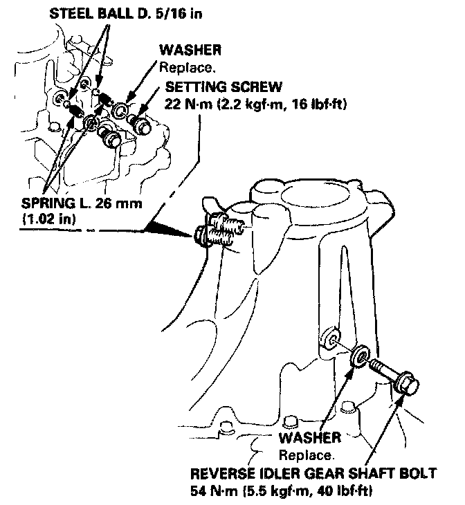 4. Install the reverse idler gear and reverse idler gear shaft in the clutch housing.