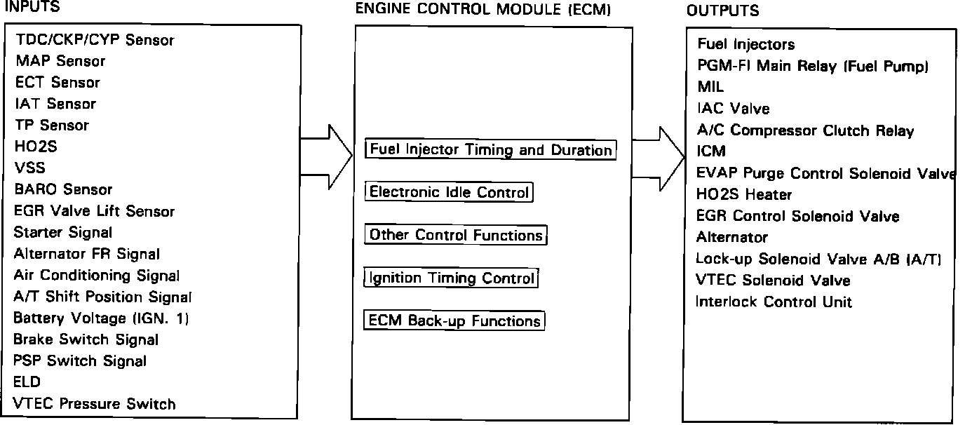 The Programmed Fuel Injection (PGM-FI) System used on this vehicle is designed to monitor and control engine management functions and components including the air/fuel mixture, idle speed and ignition timing to achieve optimum engine performance.