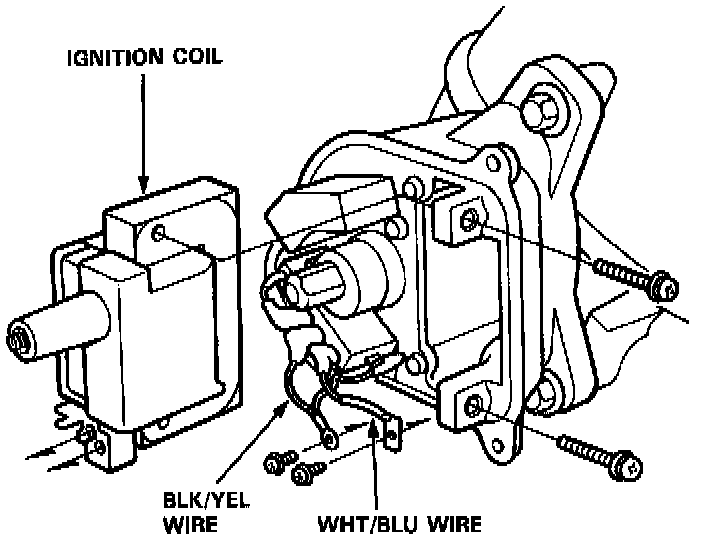 3. Remove the two screws and slide the Ignition Coil out of the Distributor Housing.