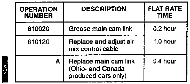 Ohio- and Canadian-produced cars: Replace the air mix control cable and the main cam link (steps 1-18).