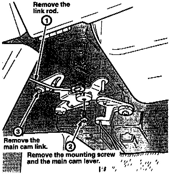 Ohio- and Canadian-produced cars: Lubricate the groove and shaft on the main cam link with the grease listed under REQUIRED MATERIALS. If the air mix control cable is bent, replace it and the main cam link.