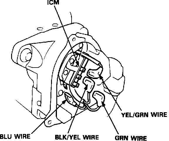 The Ignition Control Module (ICM), located in the distributor assembly, triggers the Ignition Coil, allowing stored energy to be released in the form of a high-tension pulse through the secondary windings.