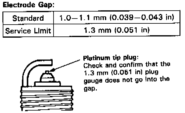 Checking Spark Plug Electrode Gap (Platinum Plug):
