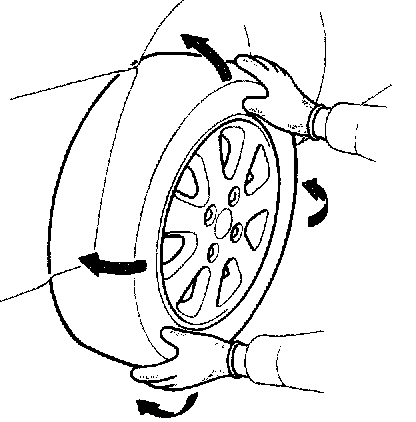 ^ Check the suspension ball joints. (Hold a wheel with your hands and move it up and down and right and left to check for wobbling.)
