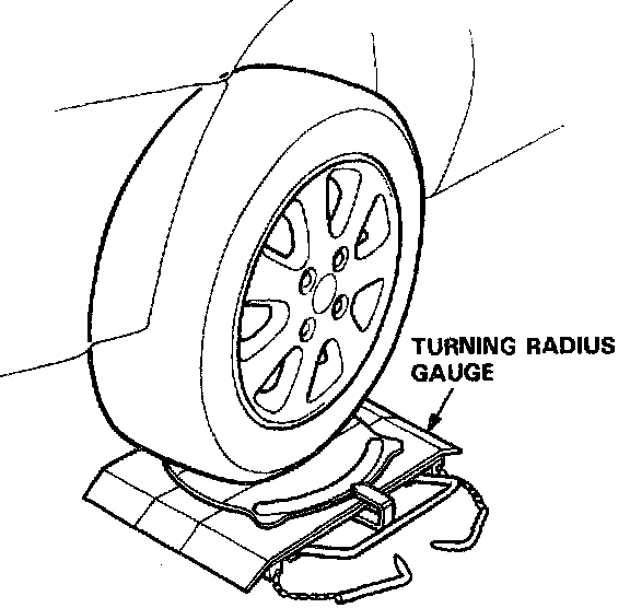 1. Jack up the front of the car. Set the turning radius gauges beneath the front wheels, then lower the car.