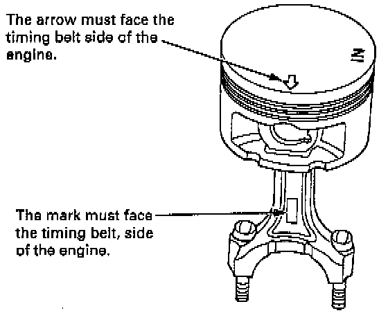 INSTALLATIONNOTE: Before installing the pistons, apply a coat of engine oil to the ring grooves and cylinder bores.