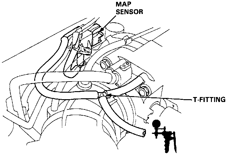 3. Install a tee fitting in line with hose #21 from the throttle body to the MAP sensor. Start engine and run at idle, measure vacuum. Vacuum should read manifold vacuum.