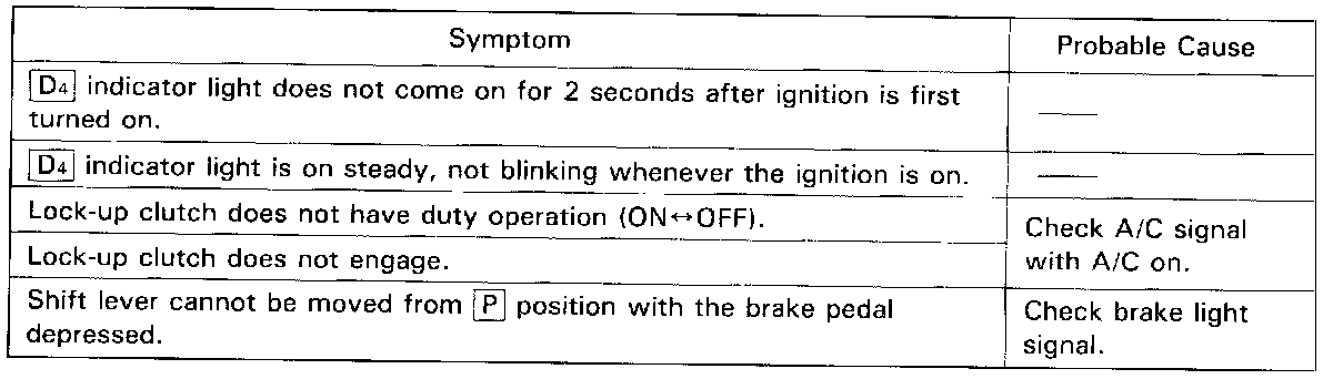 ^ If the D4 indicator light displays DTC other than those listed above or stays lit continuously, the TCM is faulty.