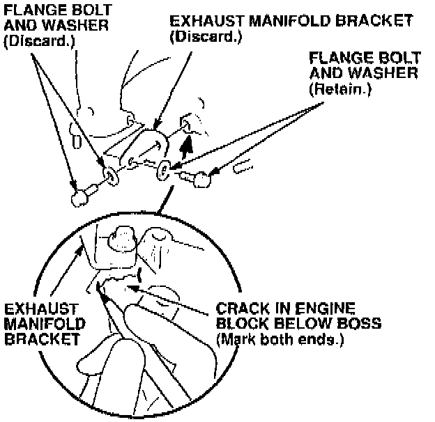 12. Remove and retain the flange bolt and washer that secure the exhaust manifold to the exhaust manifold bracket.