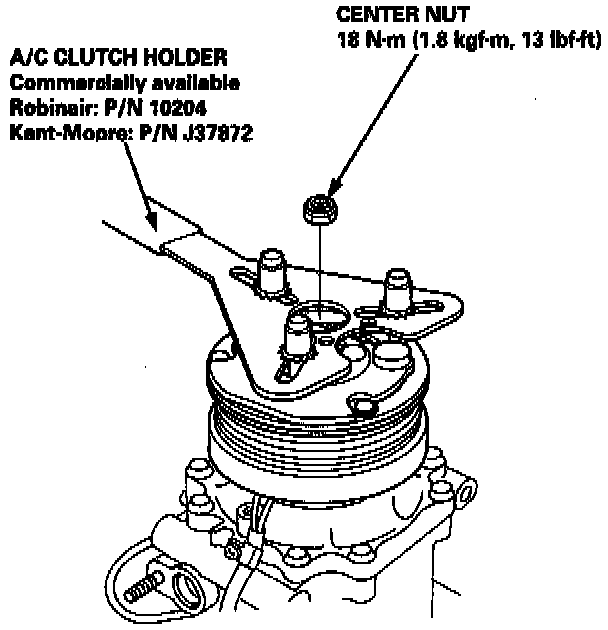 - Be careful not to damage the compressor body and rotor pulley during removal/installation.
