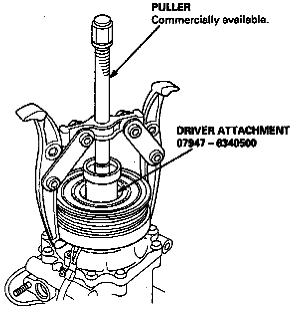 NOTE: Put the claws of the puller on the back of the rotor pulley, not on the belt area; otherwise the rotor pulley can be damaged.