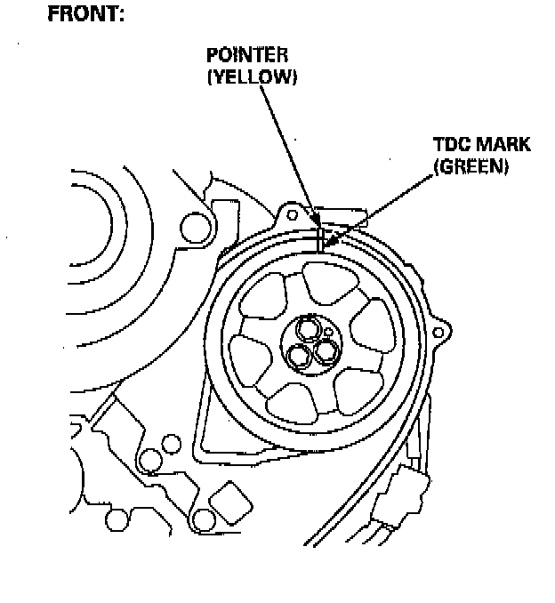 Caution: Incorrect removal or installation of the timing belt can result in damage to internal engine components.Front: