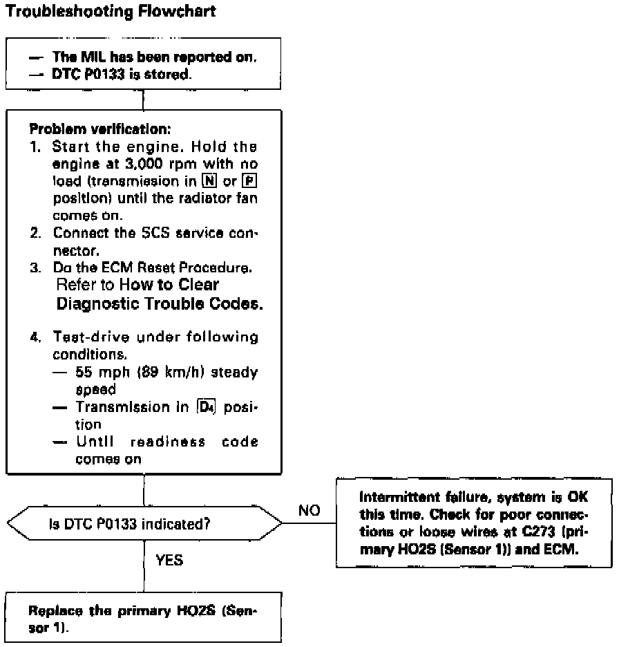 [P0133] The scan tool indicates Diagnostic Trouble Code (DTC) PO133: A slow response problem in the Primary Heated Oxygen Sensor (Primary HO2S) (Sensor 1) circuit.