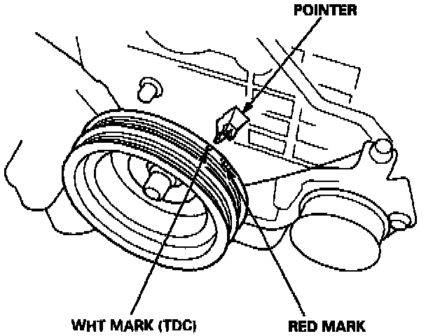 ^ Point the light toward the pointer on the timing belt cover.