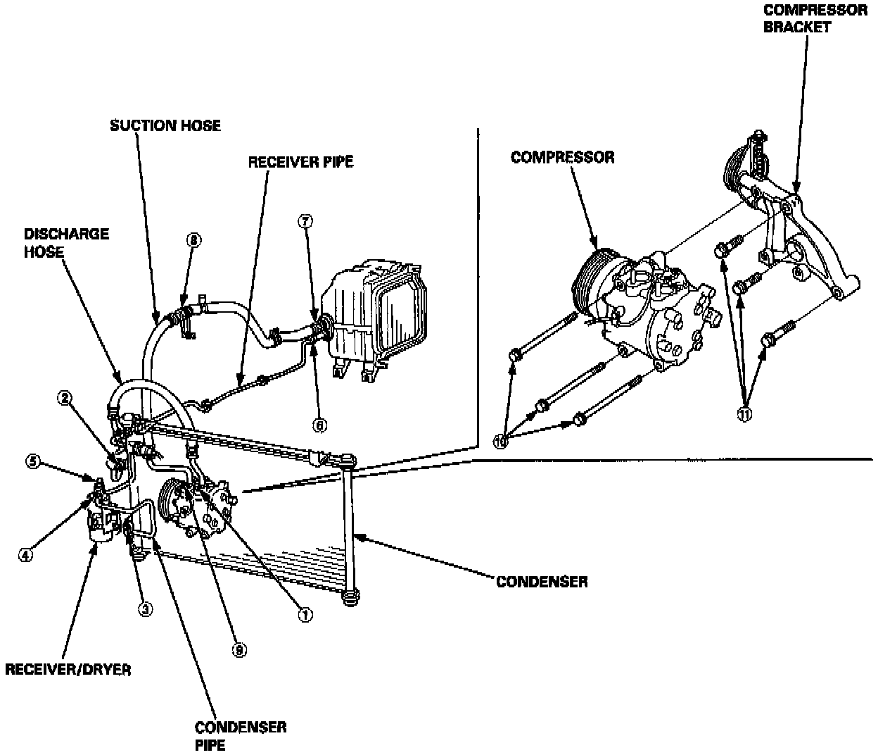 (6) Receiver Pipe To Evaporator: 13 Nm (9.4 lb ft)