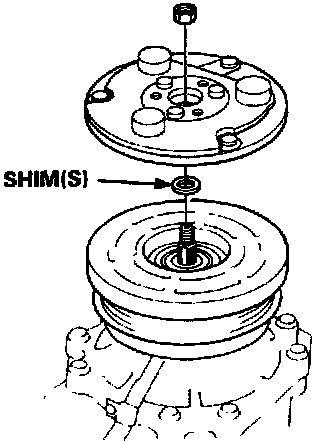 - Turn the rotor pulley by hand and measure the clearance between the rotor pulley and armature plate all the way around. If the clearance is not within specified limits, the armature plate must be removed and shims added or removed as required.