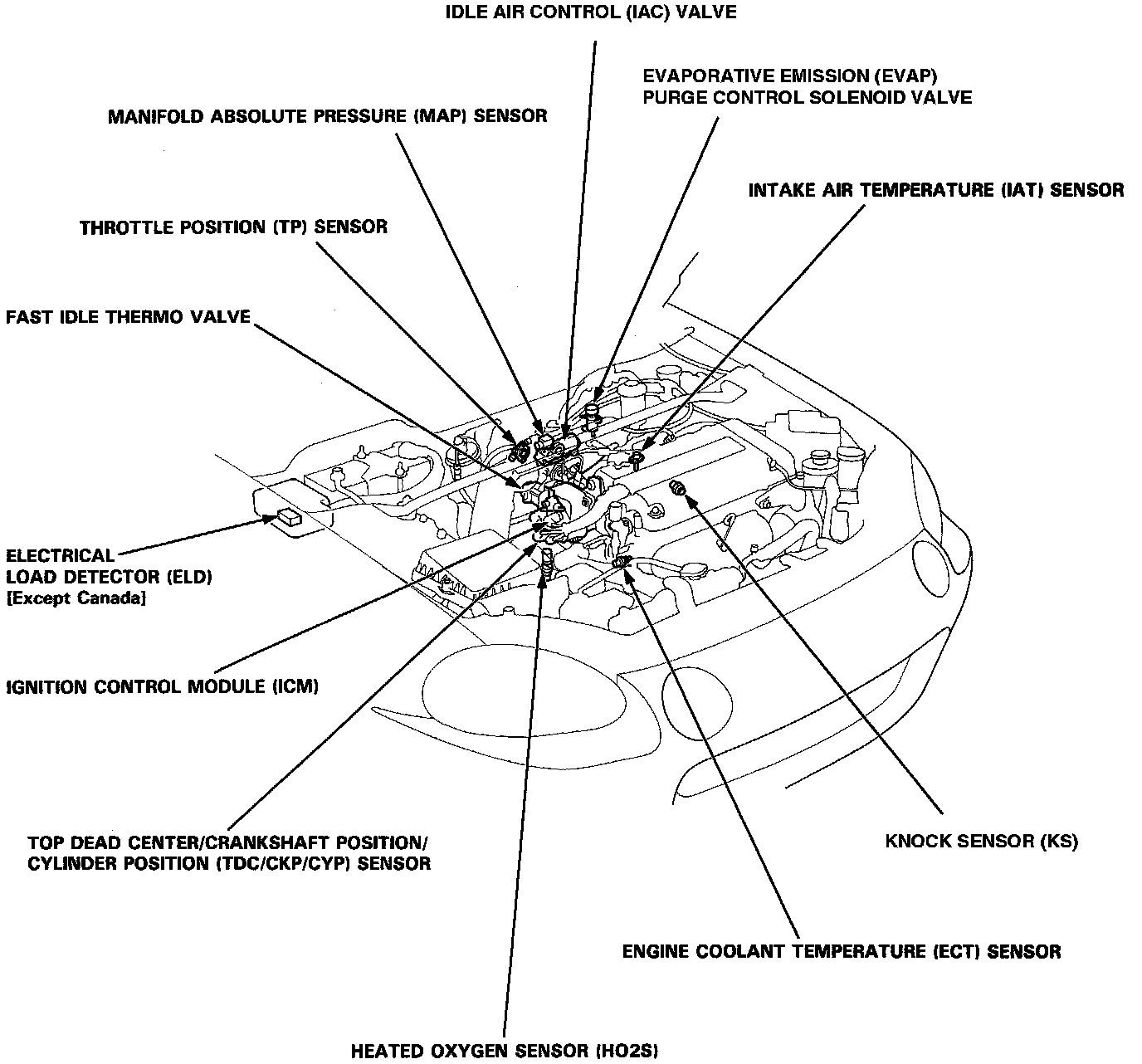 Component Locations / Fuel And Emissions / B16A3 Engine: