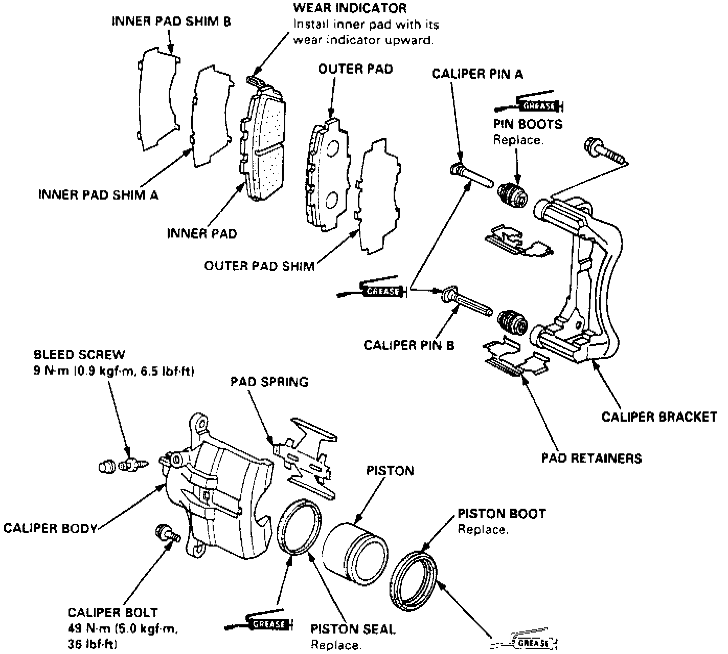 1. Refer to Fig. 4 when overhauling calipers.