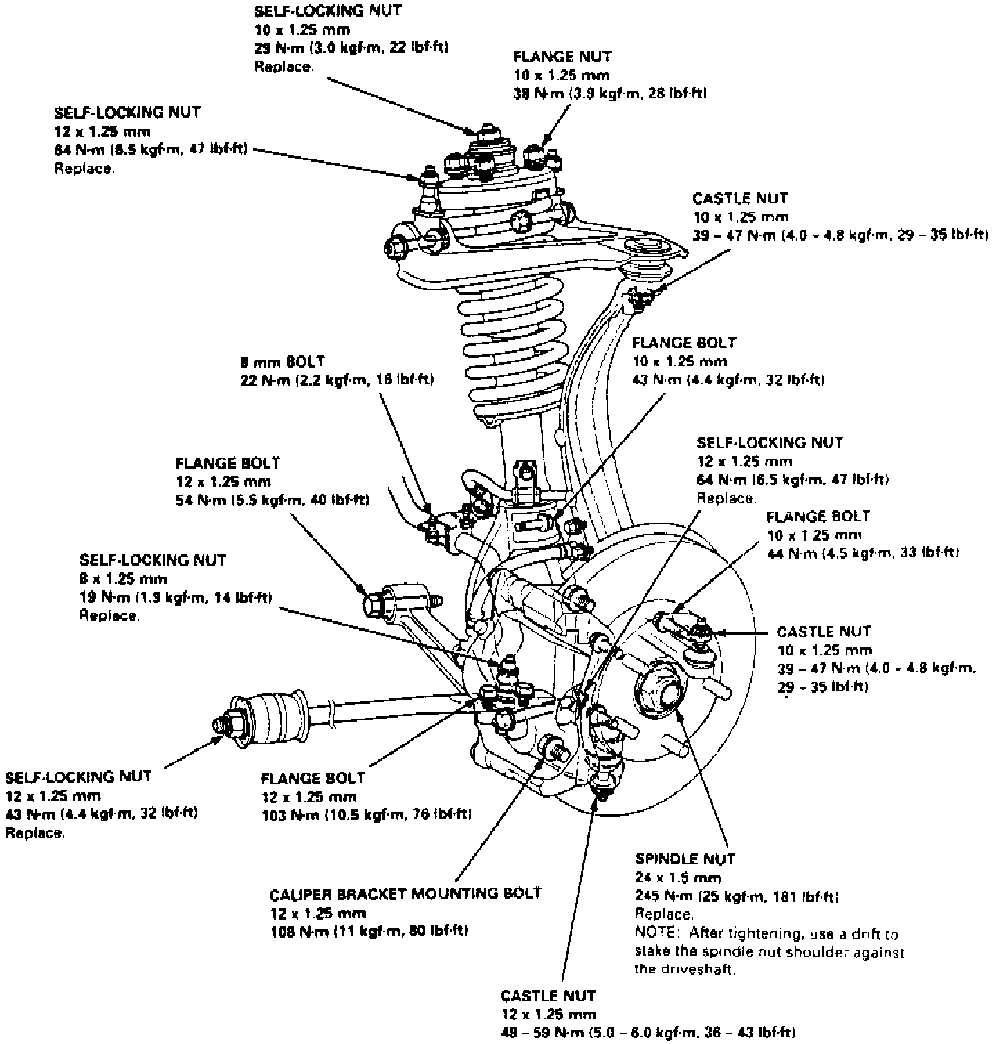 2. Remove wheel nuts and front wheel, then raise locking tab on spindle nut and remove nut.