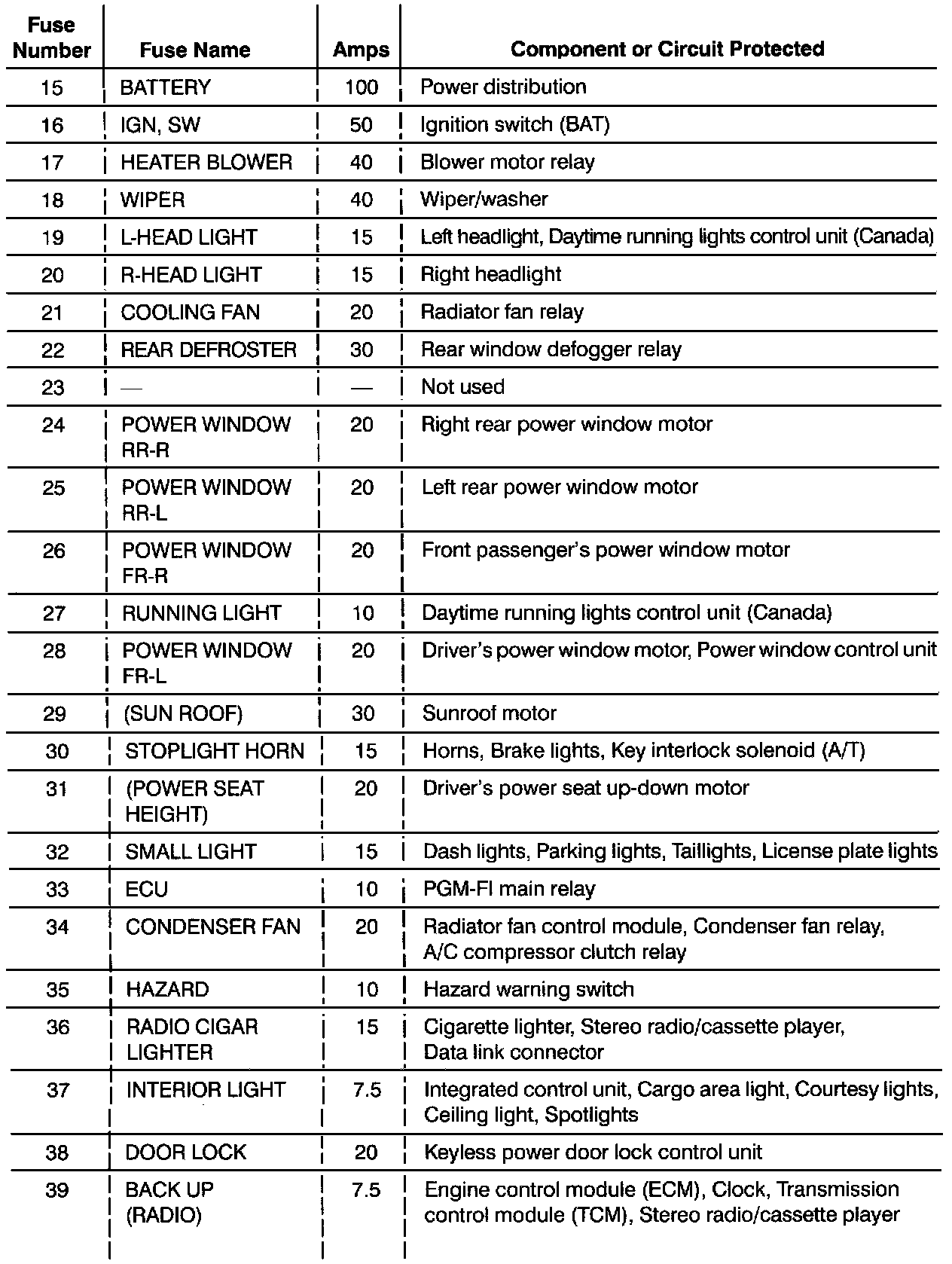 Fuse/Relay Information-Under-hood Fuse/Relay Box (Part 2 Of 2):