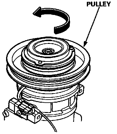 - Check the rotor pulley bearing play and drag by rotating the rotor pulley by hand. Replace the clutch set with a new one if it is noisy or has excessive play/drag.
