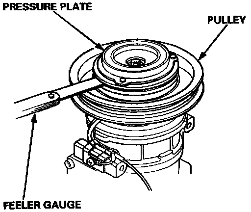 - Measure the clearance between the rotor pulley and the pressure plate all the way around. If the clearance is not within specified limits, the armature plate must be removed and shims added or removed as required.