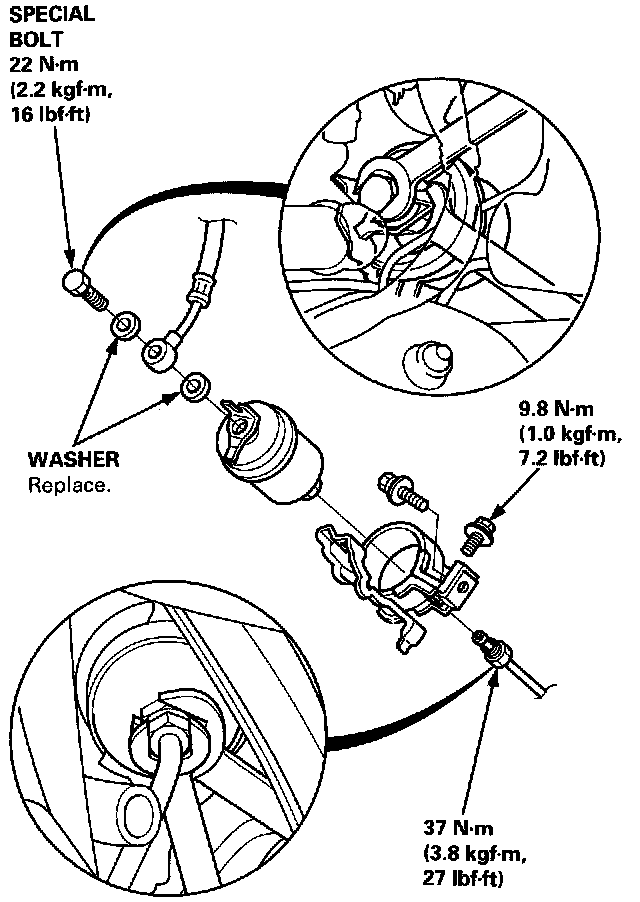 5. Remove the Special Bolt and the Fuel Feed Pipe from the Fuel Filter while supporting it with another wrench.