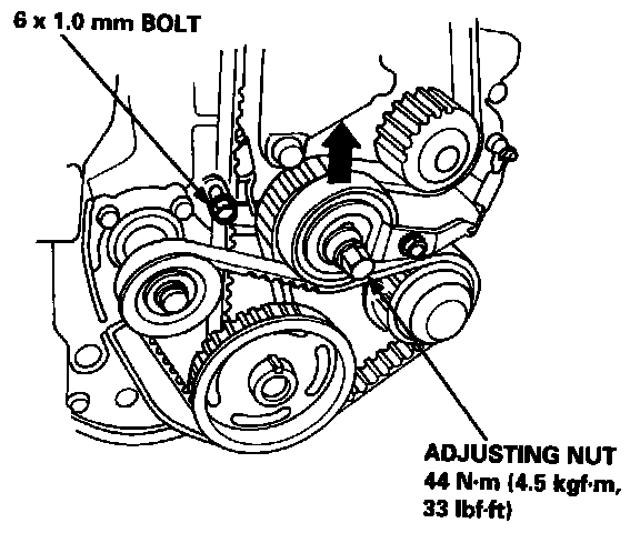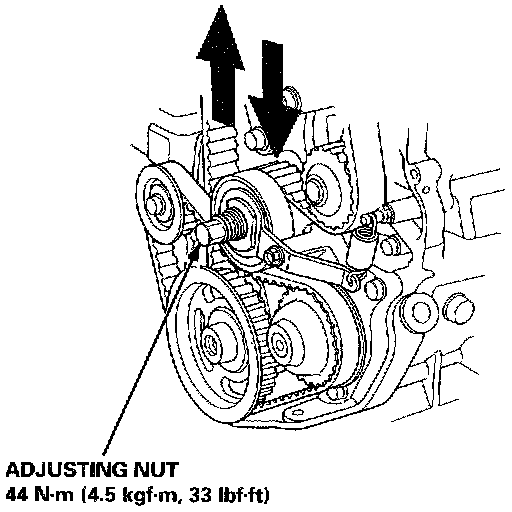5. Loosen and retighten the adjusting nut to tension the timing belt.