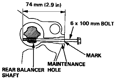 20. Remove the 6 x 100 mm bolt from the rear balancer shaft, then install the 12 mm sealing bolt.