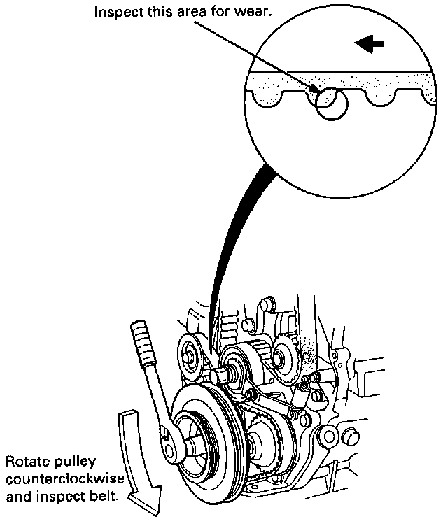 6. Inspect the timing belt for cracks and oil or coolant soaking.