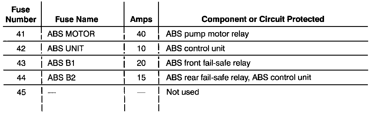 Fuse/Relay Information-Under-hood ABS Fuse/Relay Box: