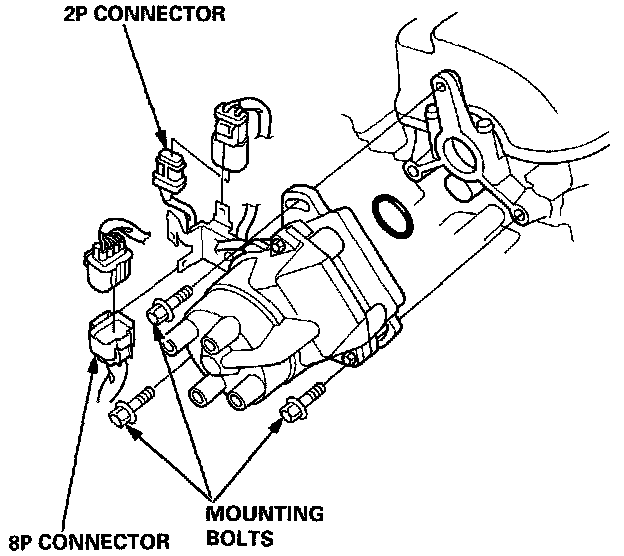 1. Disconnect the 2 P and 8 P Connectors from the Distributor.